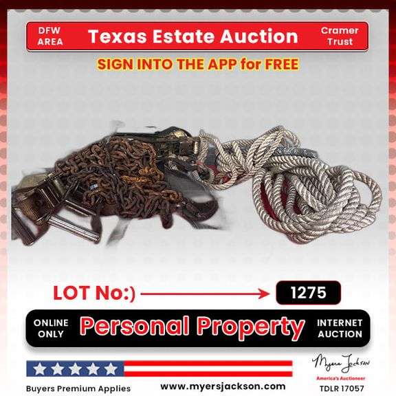 LOT 1275 - Group: Safety Harness, Rope, Various Straps & Chains